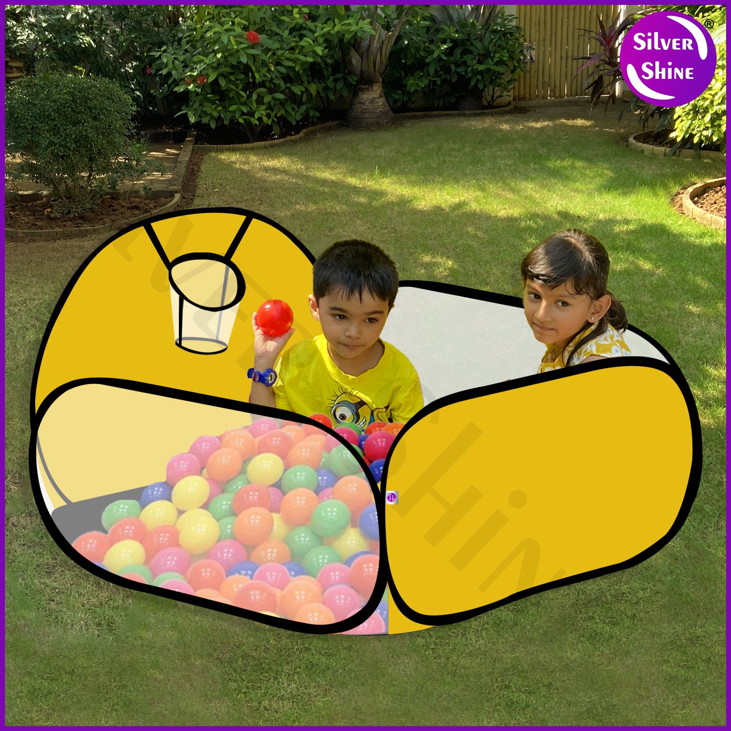 (Balls Not Included)enjoy an awesome time of play both indoors as well as outdoors.Soft waterproof polyester fabrics and high-strength memory steel holder for longer life, easy to clean and dry quickly; giving your child the safest enjoyable experience.EASY TO CARRY CASE With a lightweight & compact zippered storage bag where you can store, bring your tent anytime, anywhere! FAST SET UP Fast & easy to set up. Pops out in a flash, and the tent is ready for play. Self-holding design means no need for tent poles.Build beautiful jungle gyms and obstacle courses with PLUS POINT Play Tent Set with its own color.