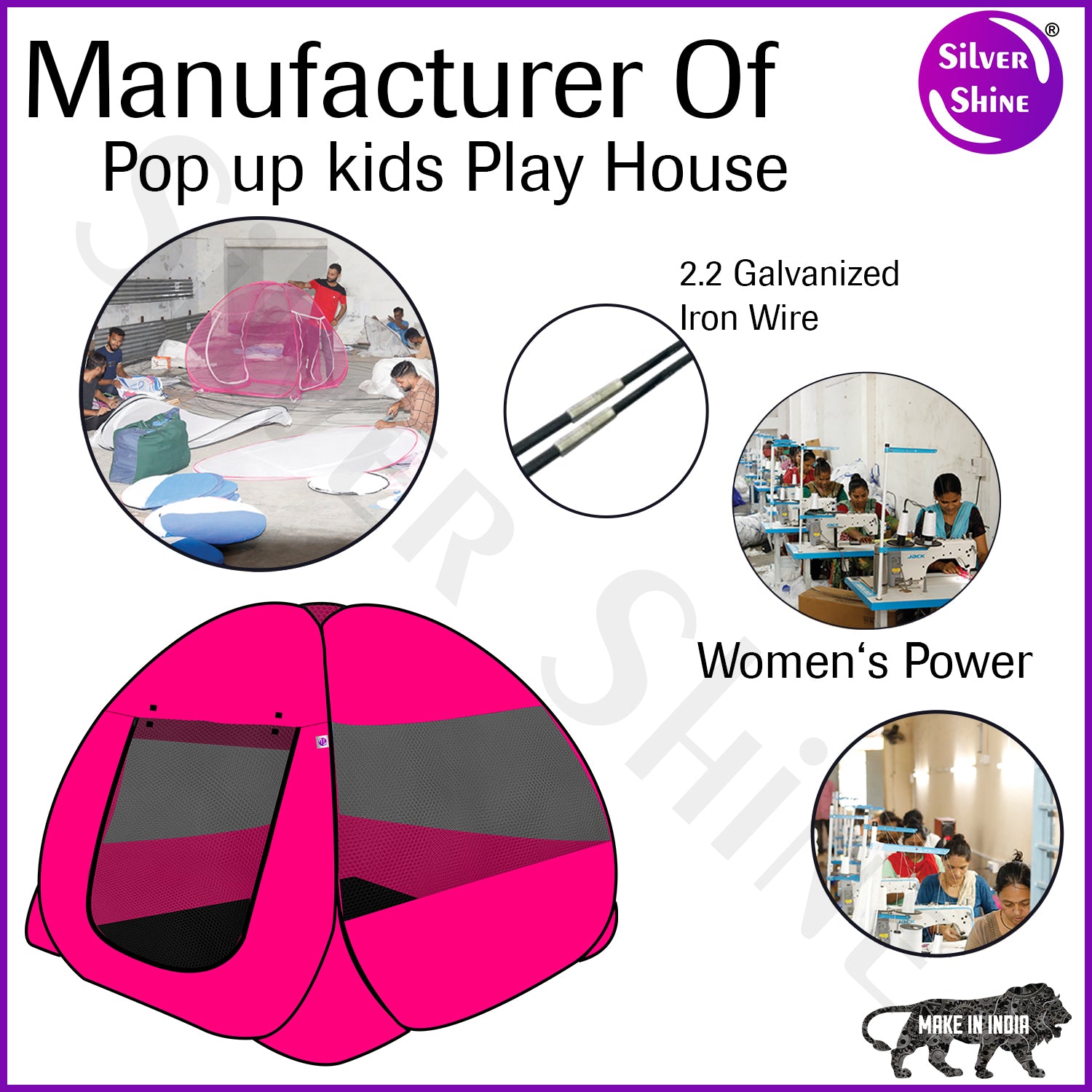 Our tent house is made with soft, breathable fabric to provide a snug and comfortable environment for your baby. The gentle enclosure ensures a cozy space for napping or playtime. Whimsical Design: The charming design of the tent features delightful patterns and soft hues, creating a magical atmosphere for your little one. It's not just a tent; it's a mini-fantasy world designed to spark your baby's imagination. Safe and Secure: Your baby's safety is our Greater Importance. The tent is equipped with sturdy construction and secure seams, ensuring a safe space for your little explorer to enjoy endless adventures.