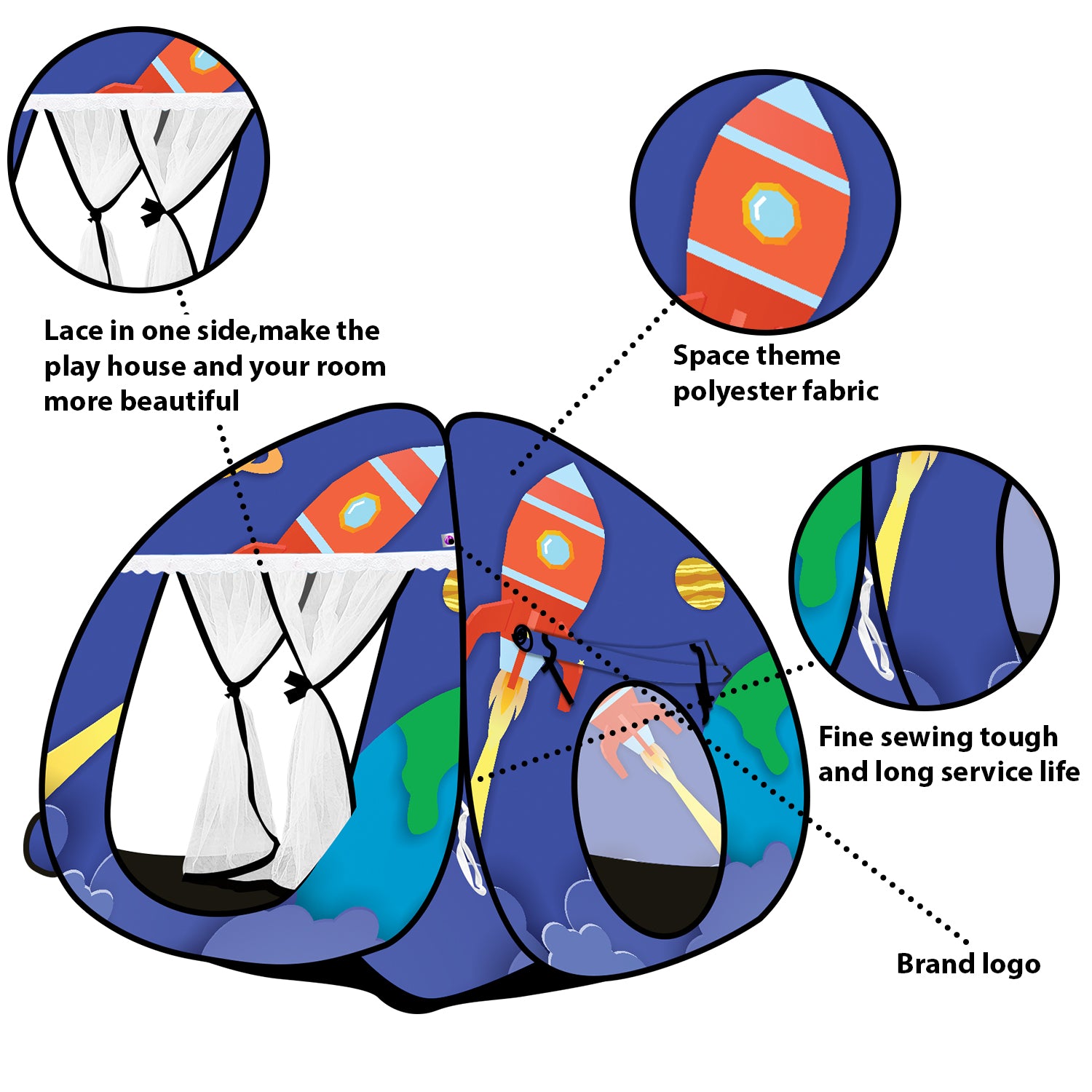 Our Printed Play house is made with soft, breathable fabric to provide a snug and comfortable environment for your baby. The gentle enclosure ensures a cozy space for napping or playtime. Whimsical Design: The charming design of the tent features delightful patterns and soft hues, creating a magical atmosphere for your little one. It's not just a tent; it's a mini-fantasy world designed to spark your baby's imagination. Safe and Secure: Your baby's safety is our Greater Importance. The tent is equipped with sturdy construction and secure seams, ensuring a safe space for your little explorer to enjoy endless adventures.