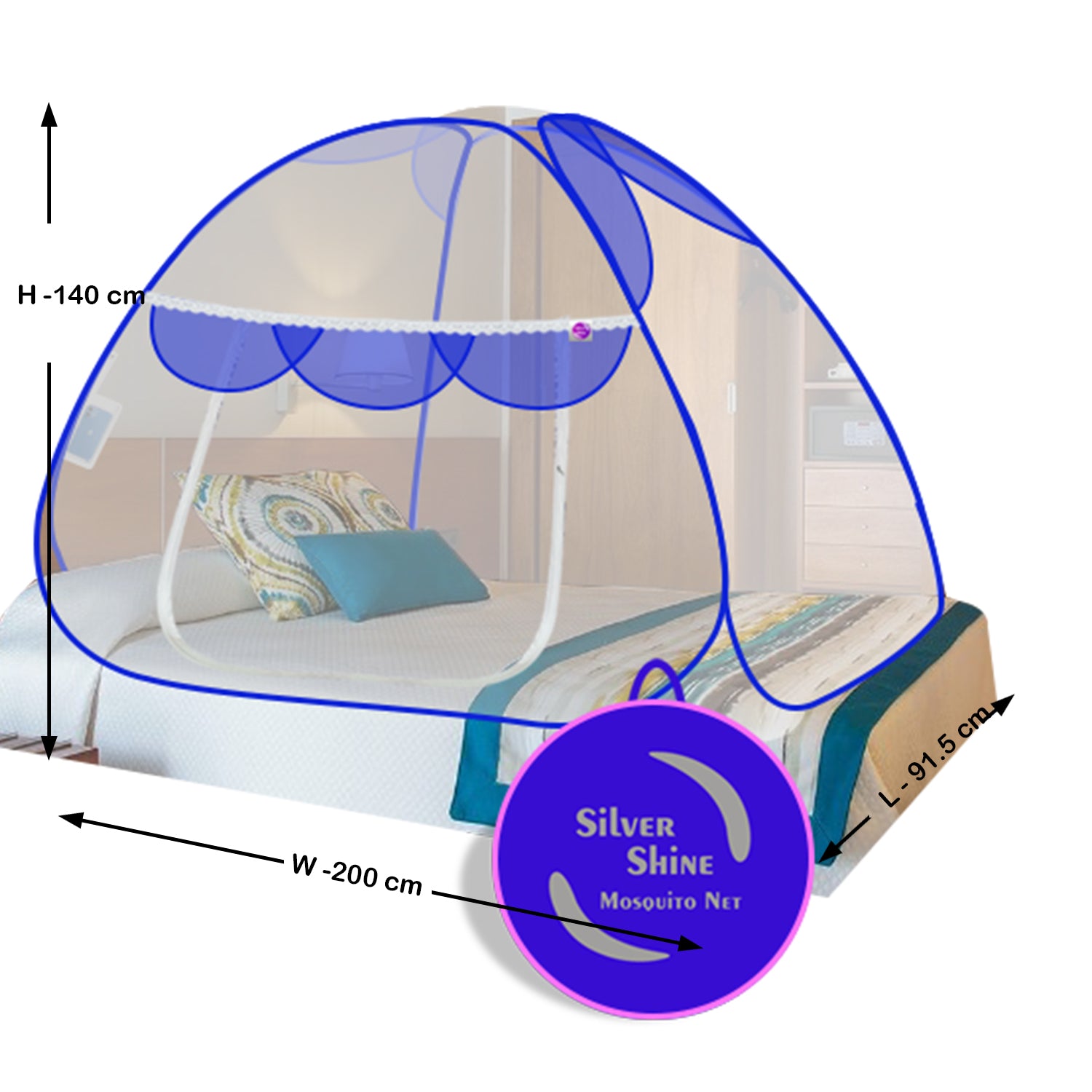 Mosquito Net is easy to install and pop-ups instantly and automatically. The net are of generous size which can easily fit any bed size . The net has large zippers for easy entry and exit. The mosquito net has a of soft fabric that has tiny holes which keeps not only mosquitoes out but also other insect out and yet allows breeze of air for comfortable and peaceful sleep. Size of Single Bed is 200*107*180 cms (i.e. 6.56*3.5*5.75 Ft) can Easily accommodate bed for Single bed.Single Bed Mosquito Net Single bed mosquito net gives complete protection from mosquitoes, flies and insects. made up with polyester fabric and fine mesh ensures it to be a quality product. It restricts the entry of flies and mosquitoes which gives a pleasant sleep to you and your child as well. Being spacious it covers the Single Bed easily. It has 1 large zipper gates which allows easy entry and exits. Its easily fold able facility and being light weighted makes it easy to carry and install any where quickly Availability of net in different colors gives people a choice to choose according to the decor of the bedroom.Stylish, spacious, different colors makes it a product which can be used to enhance the decor of house as well. being easily washable it assures that you get a clean ambiance to sleep in and enjoy the pleasant sleep
