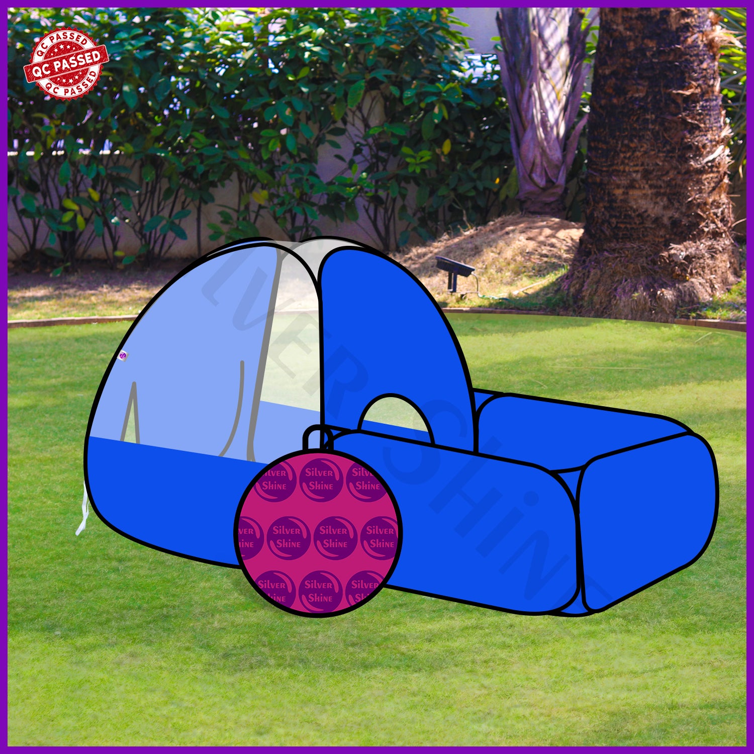 Without Ball Our 2 IN 1 tent house is made with soft, breathable fabric to provide a snug and comfortable environment for your baby.2 in 1 Combo Tunnel Tent House Ball Hoop for Kids 2 to 8 Years The gentle enclosure ensures a cozy space for napping or playtime. Whimsical Design: The charming design of the tent features delightful patterns and soft hues, creating a magical atmosphere for your little one. It's not just a tent; it's a mini-fantasy world designed to spark your baby's imagination. Safe and Secure: Your baby's safety is our Greater Importance. The tent is equipped with sturdy construction and secure seams, ensuring a safe space for your little explorer to enjoy endless adventures.