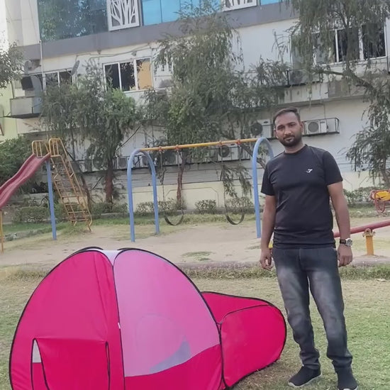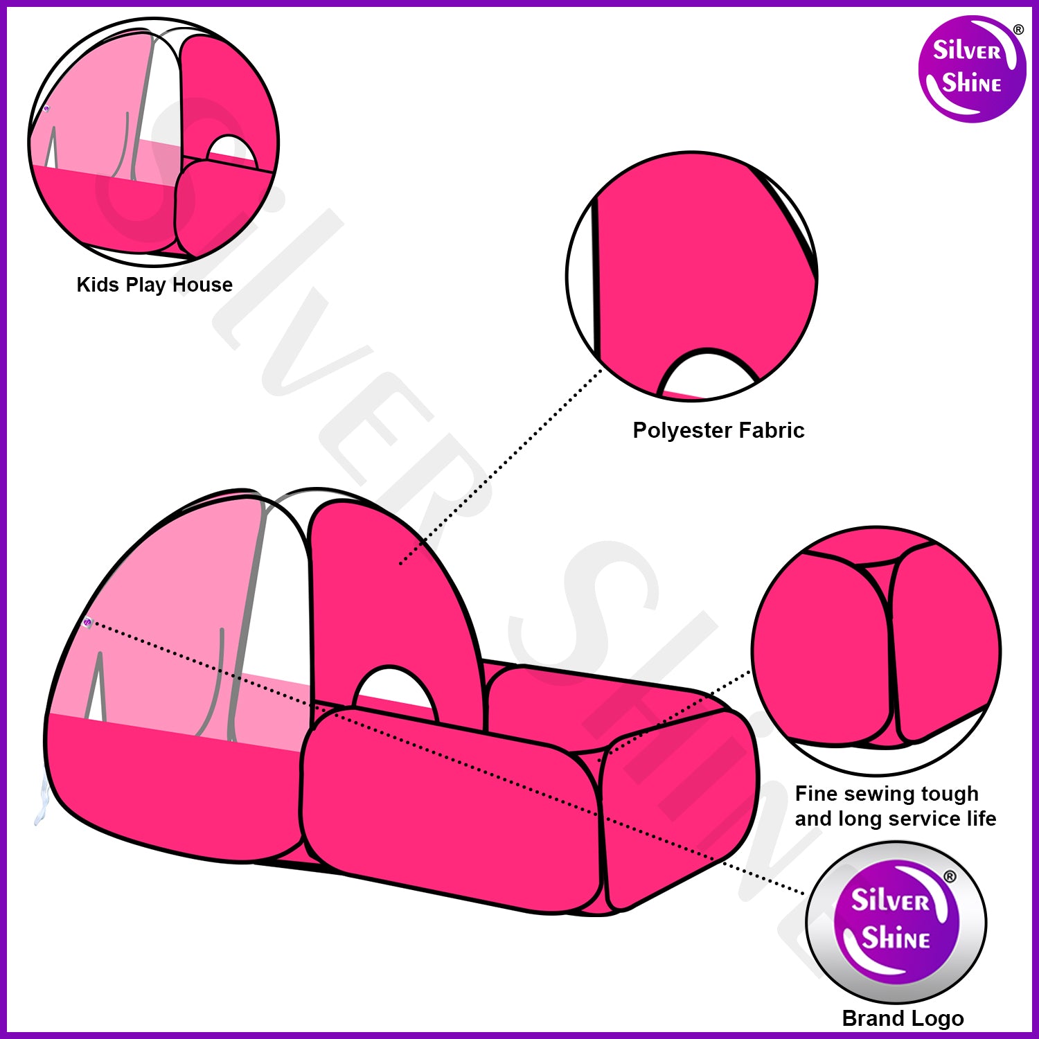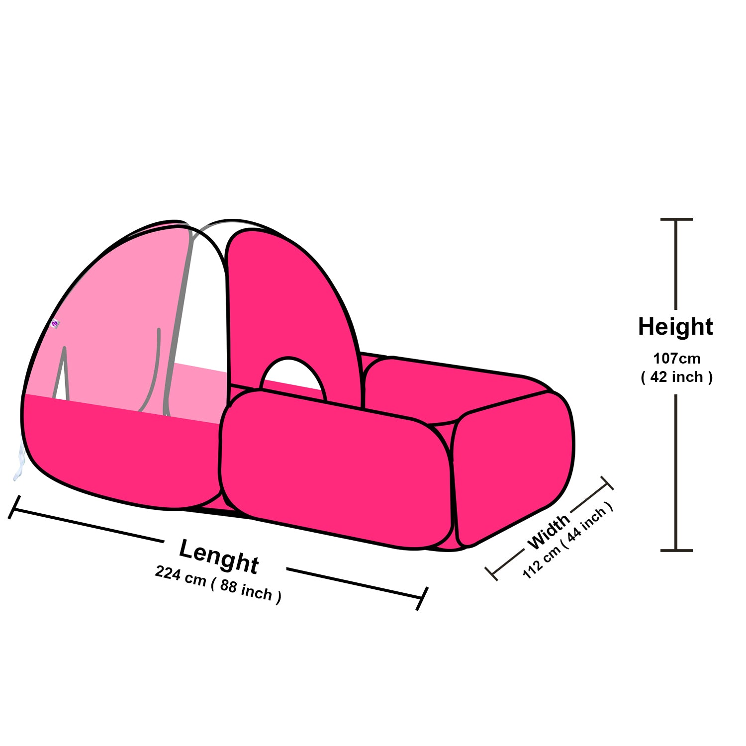 Without Ball Our 2 IN 1 tent house is made with soft, breathable fabric to provide a snug and comfortable environment for your baby.2 in 1 Combo Tunnel Tent House Ball Hoop for Kids 2 to 8 Years The gentle enclosure ensures a cozy space for napping or playtime. Whimsical Design: The charming design of the tent features delightful patterns and soft hues, creating a magical atmosphere for your little one. It's not just a tent; it's a mini-fantasy world designed to spark your baby's imagination. Safe and Secure: Your baby's safety is our Greater Importance. The tent is equipped with sturdy construction and secure seams, ensuring a safe space for your little explorer to enjoy endless adventures.