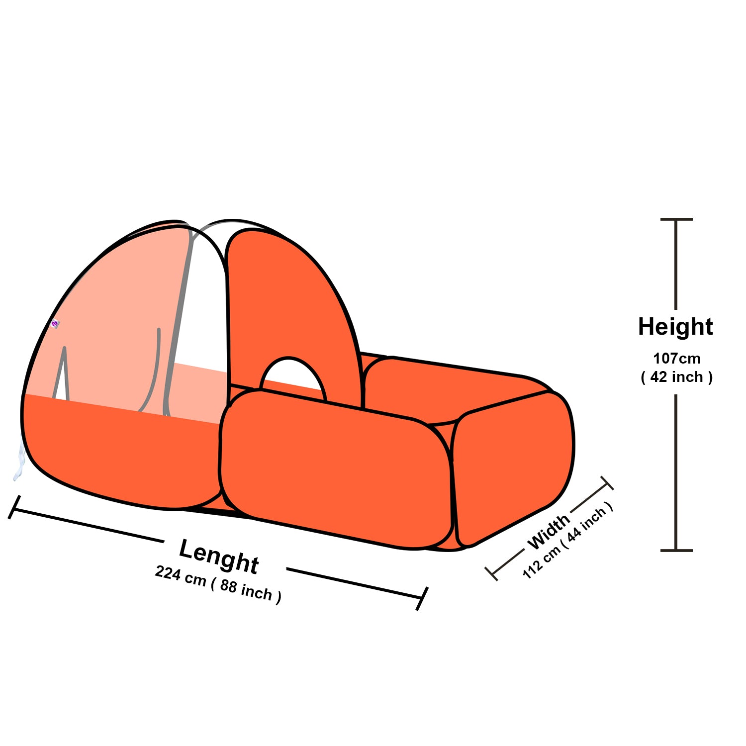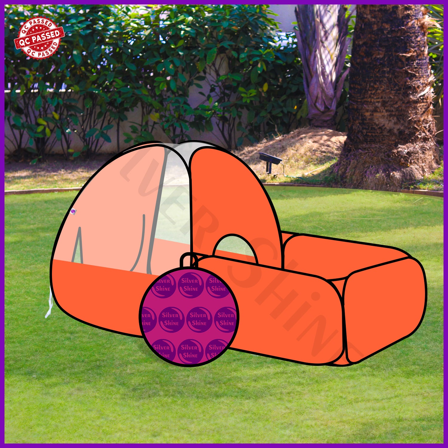Without Ball Our 2 IN 1 tent house is made with soft, breathable fabric to provide a snug and comfortable environment for your baby.2 in 1 Combo Tunnel Tent House Ball Hoop for Kids 2 to 8 Years The gentle enclosure ensures a cozy space for napping or playtime. Whimsical Design: The charming design of the tent features delightful patterns and soft hues, creating a magical atmosphere for your little one. It's not just a tent; it's a mini-fantasy world designed to spark your baby's imagination. Safe and Secure: Your baby's safety is our Greater Importance. The tent is equipped with sturdy construction and secure seams, ensuring a safe space for your little explorer to enjoy endless adventures.