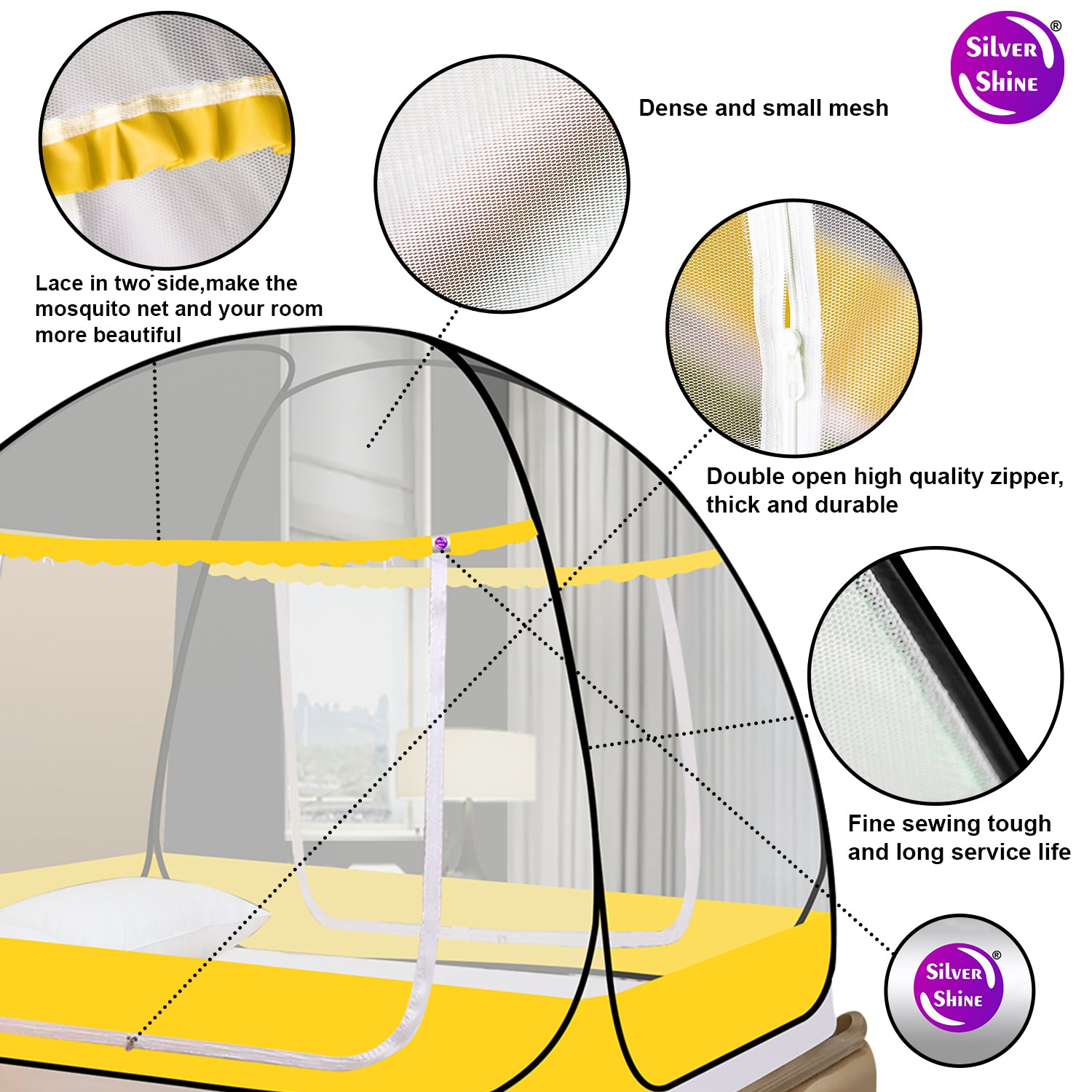 Mosquito Net offers protection against mosquitoes, flies and other insects. we are likely to get affected by harmful diseases like malaria, dengue fever and various forms of encephalitis to safeguard yourself against such hazards, you need a protective shield and this is where you really need Healthy Sleeping Mosquito Net. Specially design for Adults & family mosquito net for comfort for your family made with 2 side zipper and 4 sides ventilated mesh, travel mosquito net can ensure your loved ones absolute comfort, Safe material: made from materials that is breathable, soft and gentle. Double stitching with base cloth , the mosquito netting holes is dense and small and is 100% safe for your loved ones.